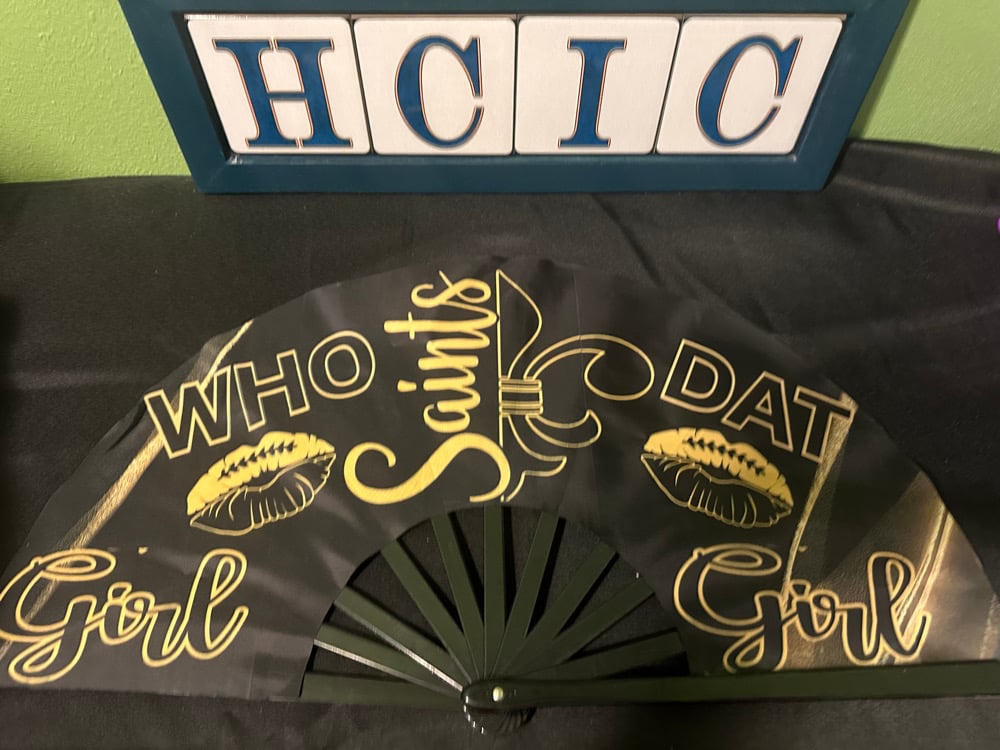 26x13 Custom Clack Fan and 20oz Skinny Hot and Cold Tumbler.